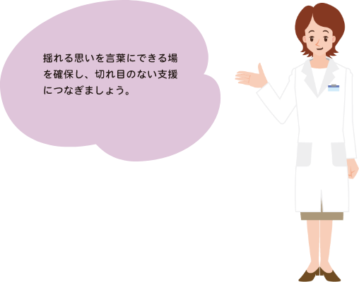 否定せず、気持ちを言葉にしていけるような関わりが大切です。そして、まずはここまでの時間を患者さんとご家族が肯定できるよう伴走します。